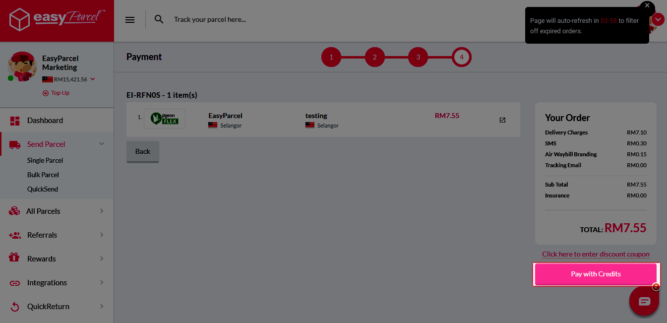 Step 8: Confirm your parcel details and click on the “Check Out” button.